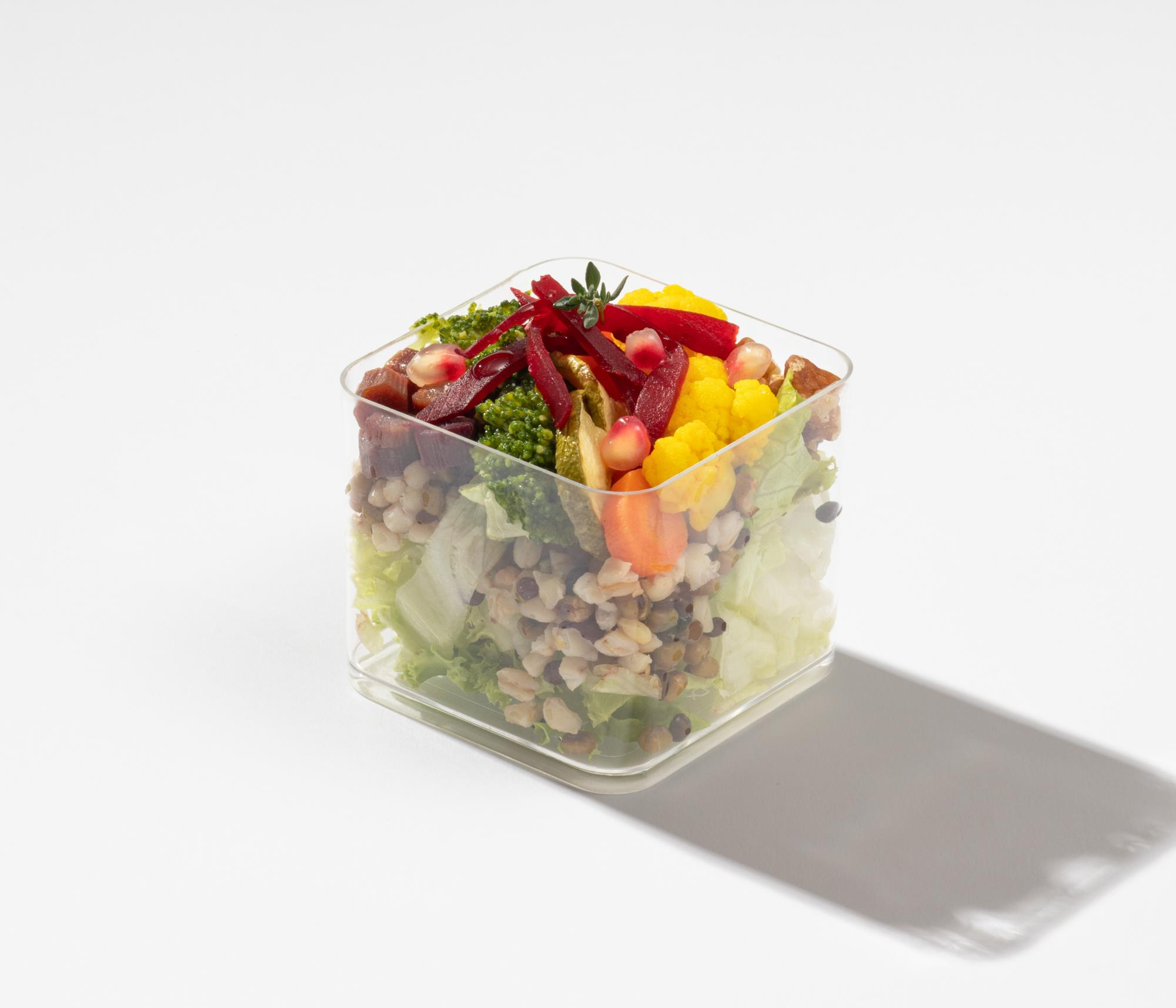 Prepared with the season’s freshest greens, this nourishing bowl brings together all the colors of nature. It includes grains such as wheat, mung beans, and beluga lentils; and vegetables like purple and orange carrots, broccoli, turmeric cauliflower, grilled zucchini, and roasted beetroot. Enriched with walnuts and pomegranate seeds, the flavor is perfectly completed with a refreshing citrus dressing.